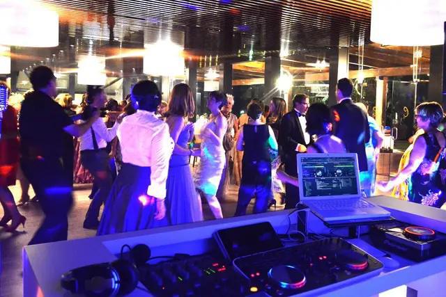 Aperitivo, baile y barra libre amenizados con equipos de sonido e iluminación propios.